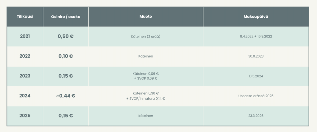 Yhtiö pyrkii aktiiviseen osinkopolitiikkaan huomioiden taloudellisen tilanteensa sekä sitä koskevat vakavaraisuusvaatimukset.